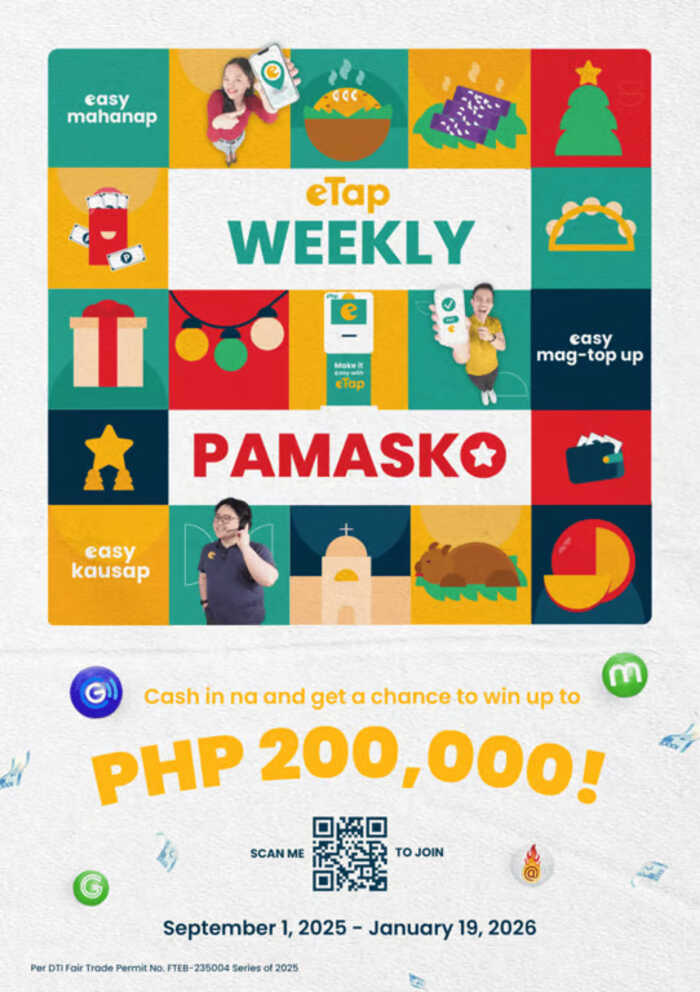 With the ‘Ber months finally here, leading self-service payments kiosk provider eTap Solutions is giving Filipinos a new way to try their luck and add to the holiday cheer: from September 1, 2025, to January 19, 2026, eTap users can submit their entries to the eTap Weekly Pamasko campaign for a chance to win up to P200,000!